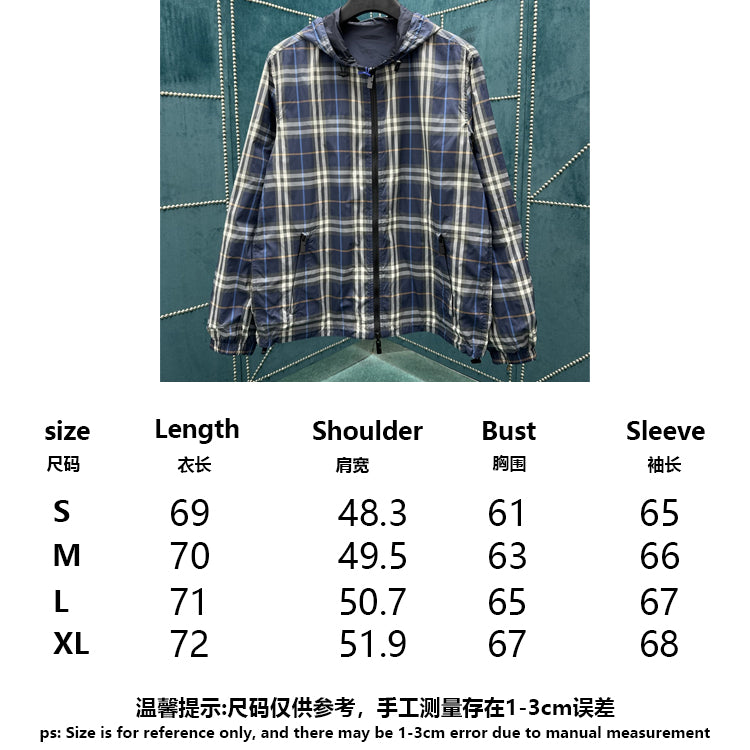 Burberry 2025 Spring/Summer New Double-sided Two-Wear Tartan Long Sleeve Hooded Jacket