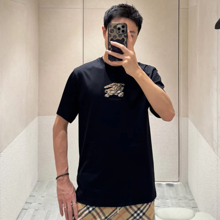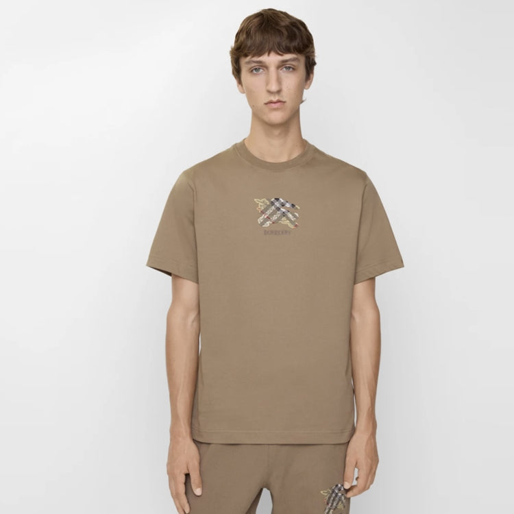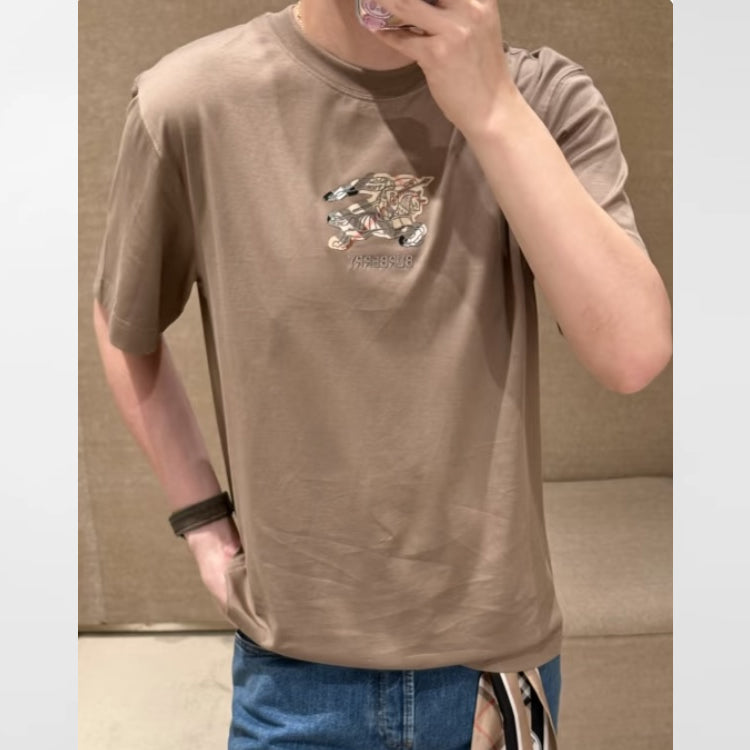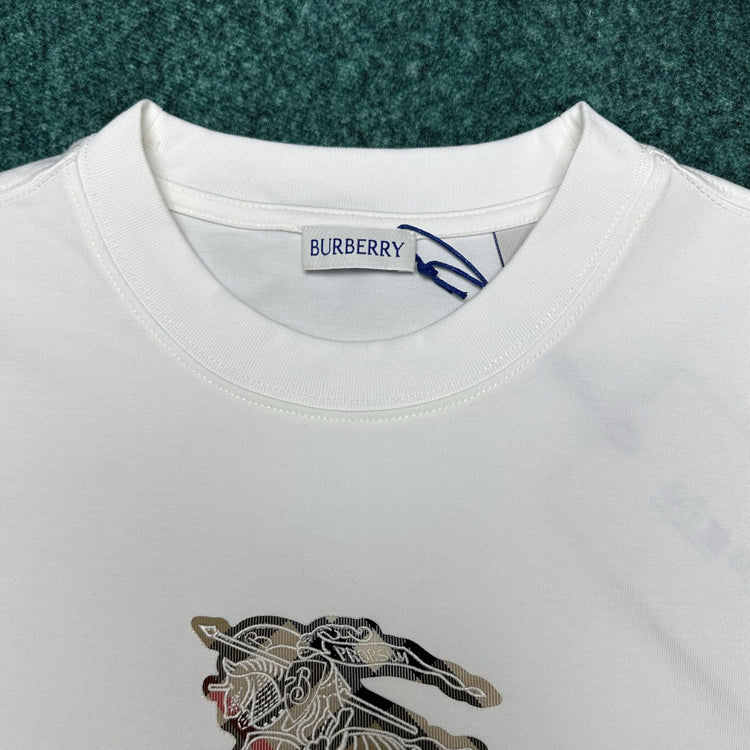 Burberry 2025 Spring/Summer New Horse Riding Logo Tartan Cotton T-Shirt