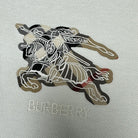 Crafted from lightweight cotton gauze, it features a修身版型. Accented with embroidered brand logos and equestrian insignia (EKD), it showcases a Burberry check pattern as the backdrop, rendered in iconic sand beige.