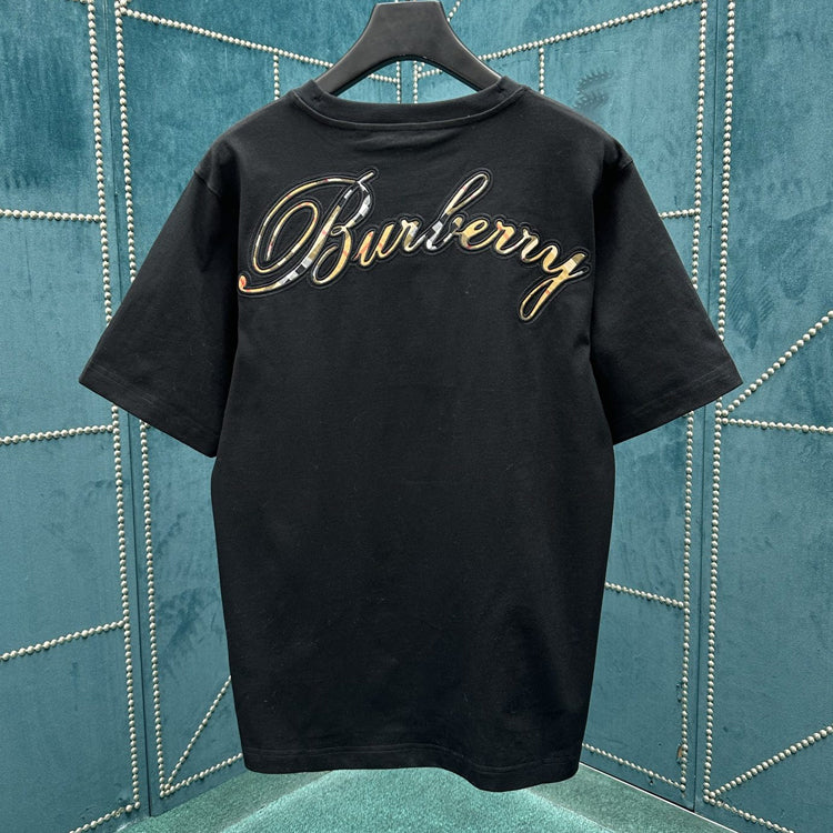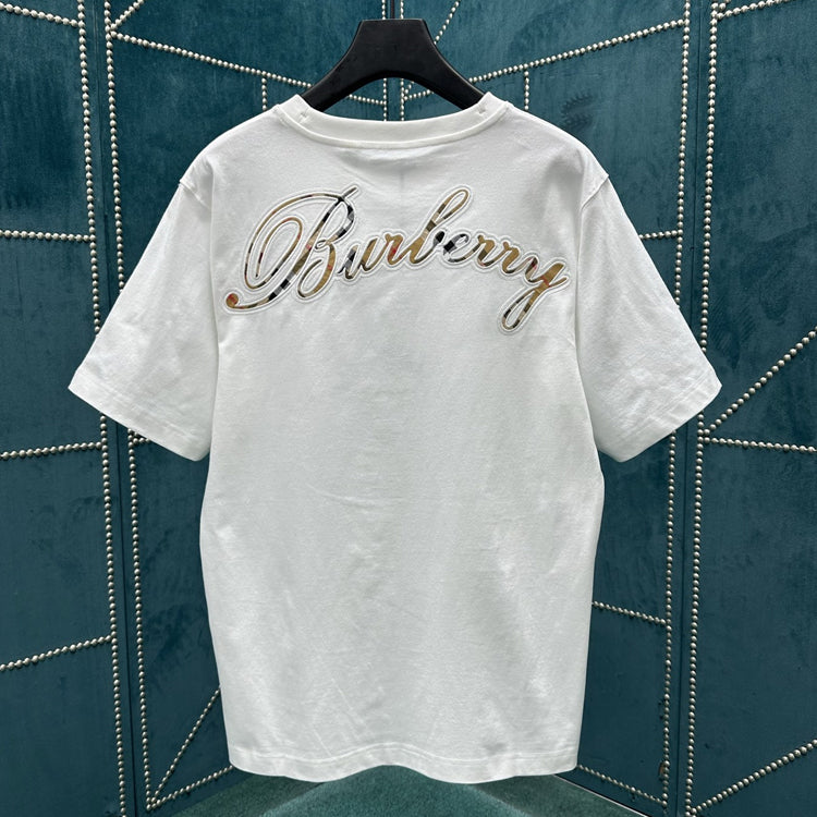 Burberry 25ss new plaid cursive style logo decoration cotton T-shirt