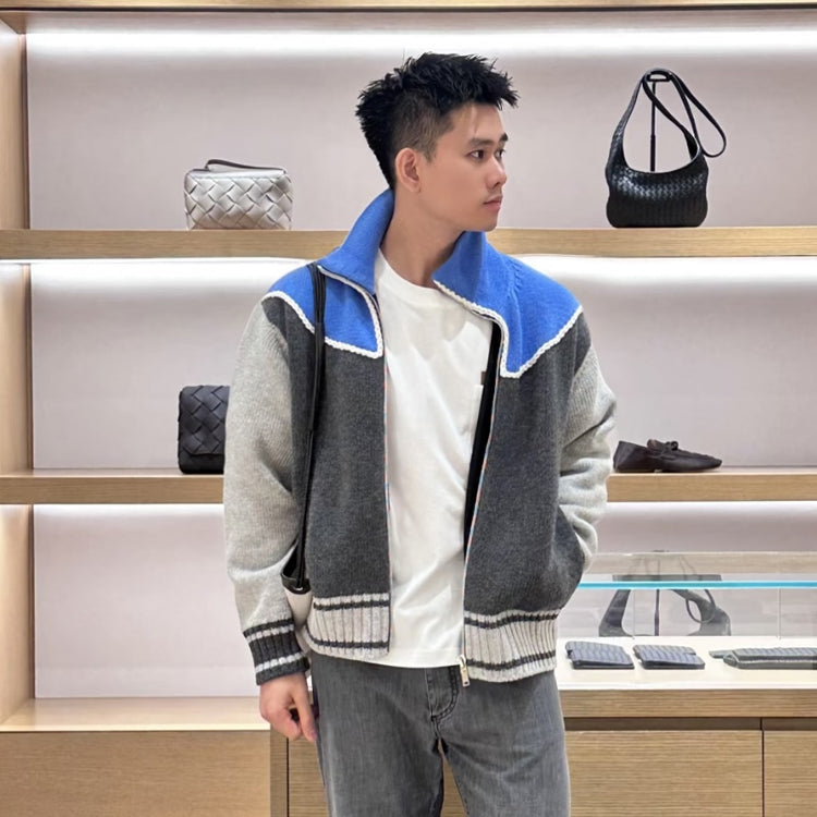 BV 25SS new color blocked zipper stand up collar sweater