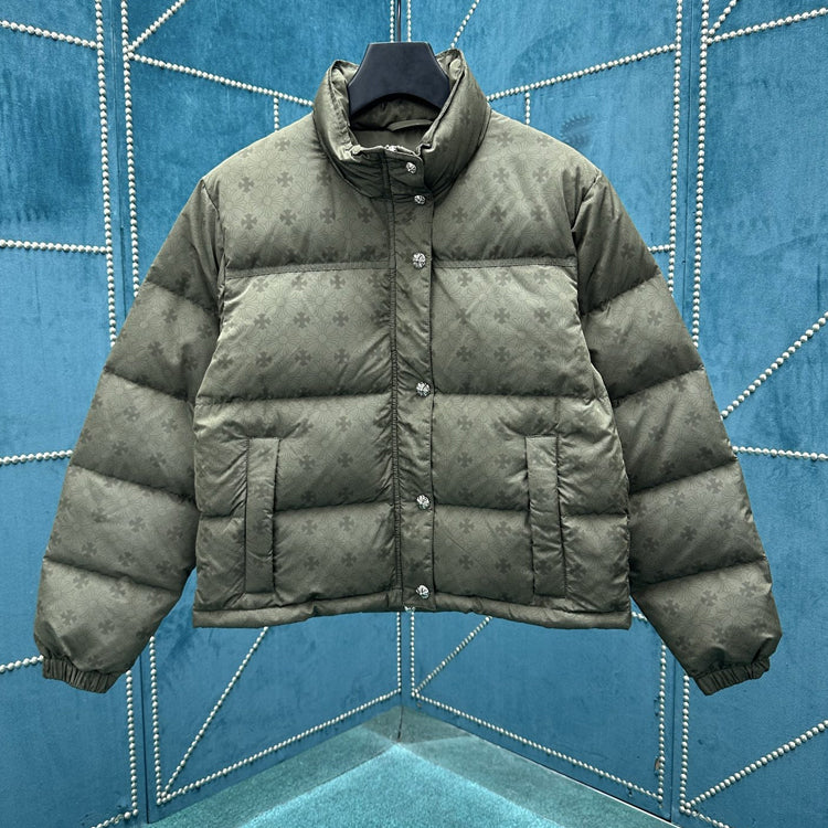 The military green base color is wrapped in low-key dark floral patterns, paired with the iconic Croheart buttons for a delicate feeling hidden in every small place. The fluffy and plush texture is not at all bulky, and the cuffs are neat and tidy