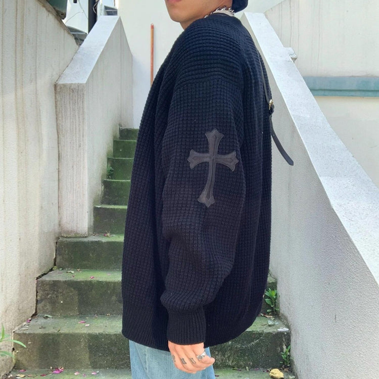 Chrome Hearts Arm Cross Leather Tag Waffle Knit Sweater