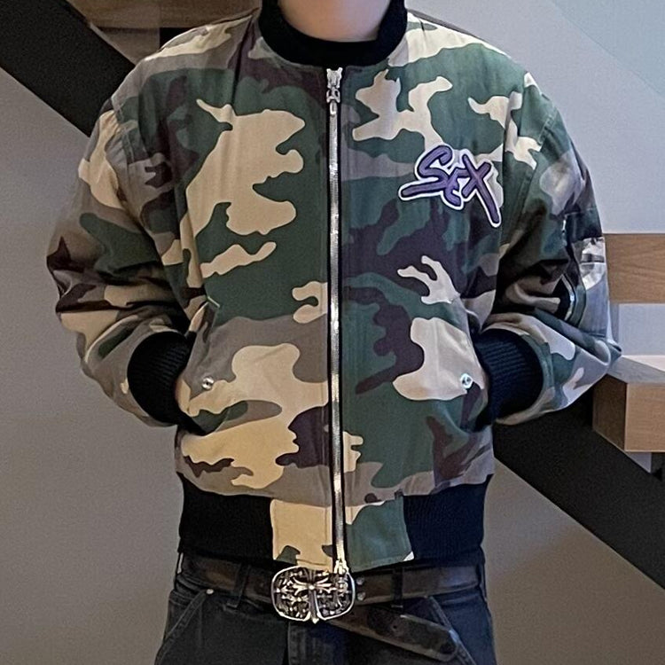Chrome Hearts SEX Graffiti Camo Baseball Jacket