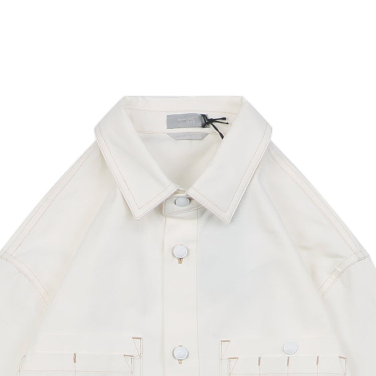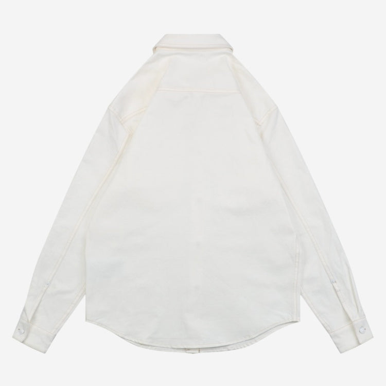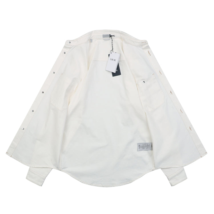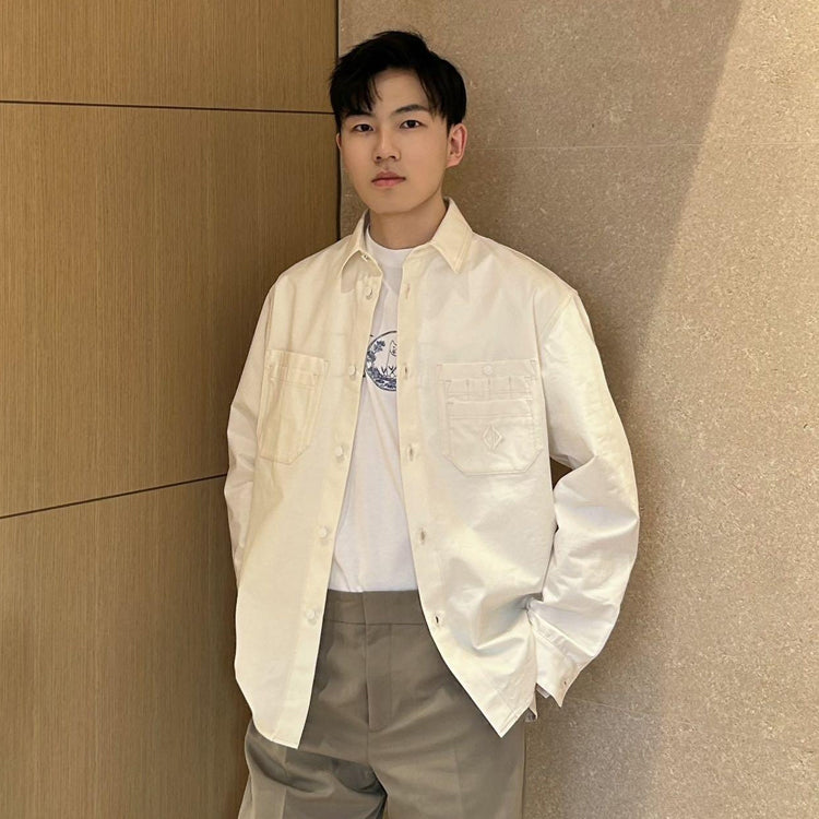 Crafted from high-count cotton twill fabric, with reinforced stitching at the cuffs and collar, this piece balances crisp texture with breathability, suitable for layering or wearing alone in autumn. The body features intricate embroidery inspired by the brand's archival motifs. The optimized cut combines a relaxed silhouette with a slightly loose design, while the shoulder line and body length proportions are adjusted to accommodate both formal and casual occasions