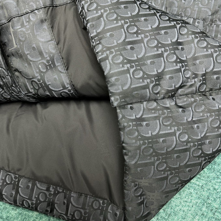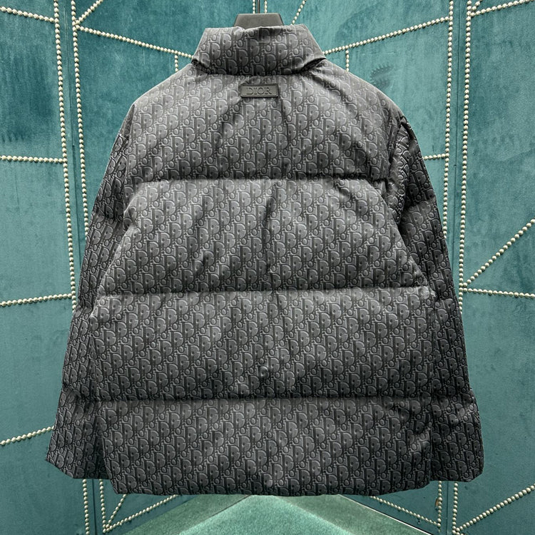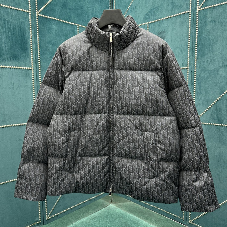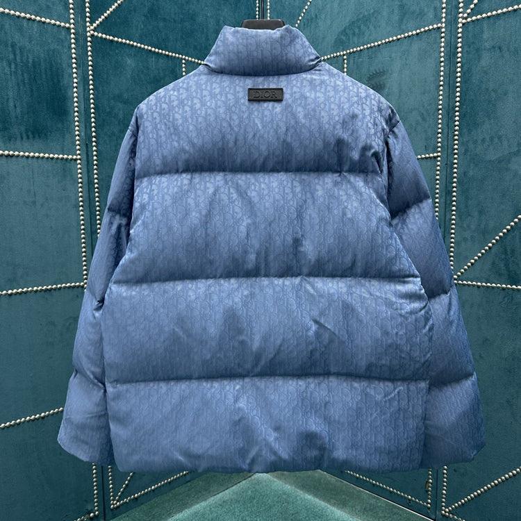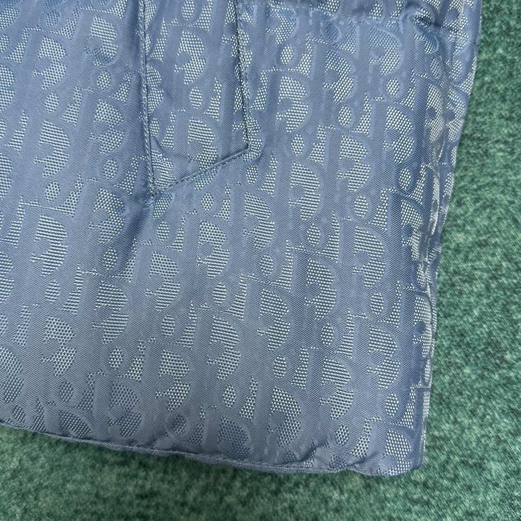 This jacket with Oblique print on cotton blend fabric highlights Dior's classic Oblique print. Crafted with cotton blend fabric and adorned with Dior rubber patches on the back, paired with a stand up collar for a unique look. The overall pattern showcases temperament, while the same tone graphic style details enhance the style of various outfits.