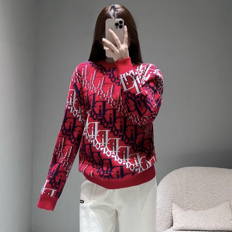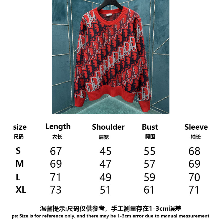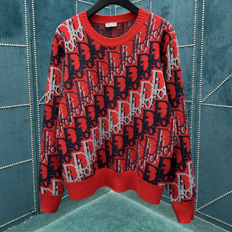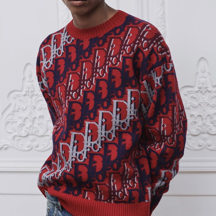 The Oblique print on the red sheep wool jacquard fabric highlights Dior's classic Oblique print pattern on this knitted sweater. Crafted with red sheep wool jacquard fabric and adorned with Oblique prints throughout, adding a fresh touch to the classic silhouette. Can add personalized style to various leisure styles.