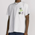 This T-shirt is made of white cotton plain knit fabric and is a new product of the 2026 Spring Men's Clothing series. It is decorated with multi-color patches and carefully crafted with black cotton plain knit fabric. The round neck design can be paired with the pants of this series to create an exquisite look.