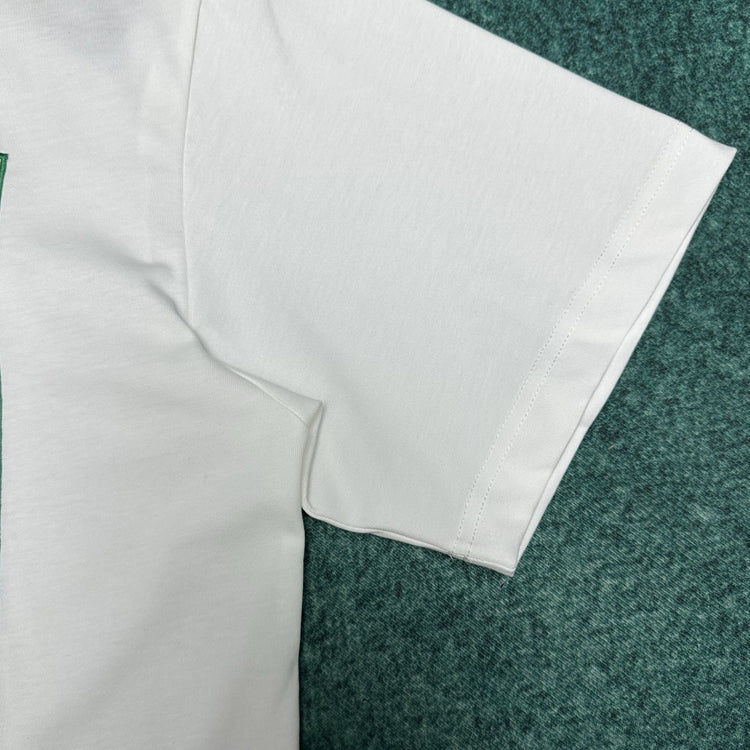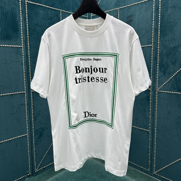 The white and green cotton plain knit fabric Book Cover embroidered design is a classic item in the Jonathan Anderson Dream Library collection, showcasing the first edition cover of Fran ç oise Sagan's work "Bonjour Tristese" and paying tribute to literary classics. Crafted with white and green cotton plain knit fabric, the book cover is embroidered on the front. Can be paired with oversized precision cut pants to create a fashionable look.