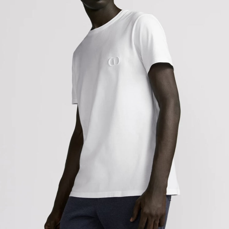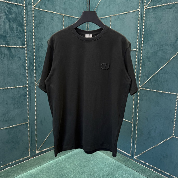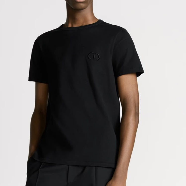 This T-shirt combines elegance and casual style. Crafted with black cotton plain knit fabric, the chest is adorned with CD Icon embroidery in the same color tone.