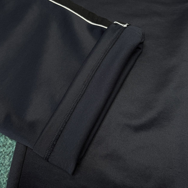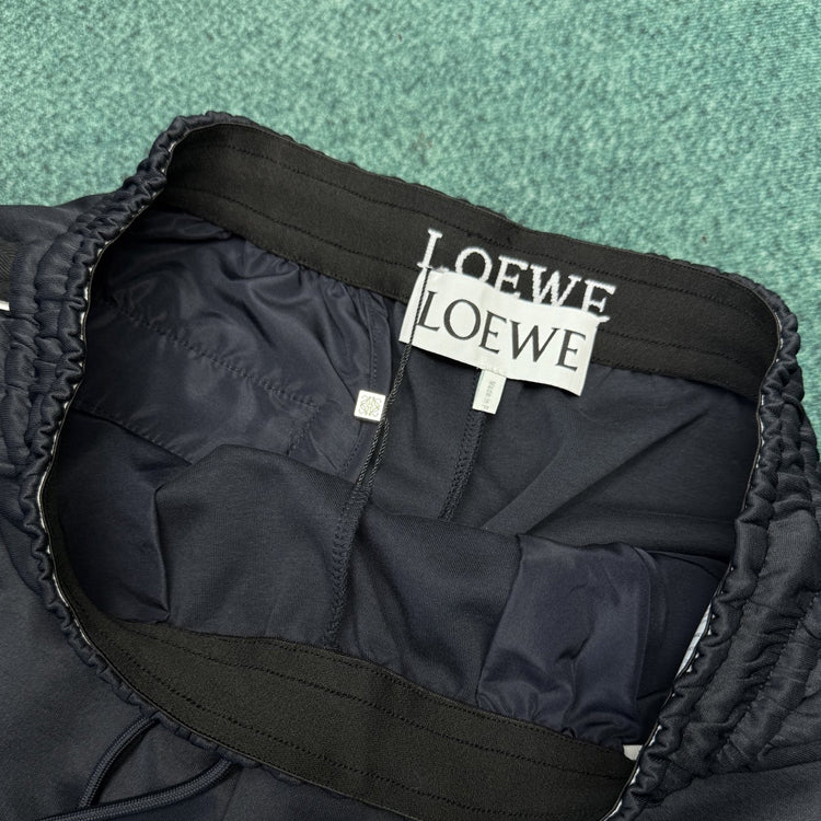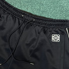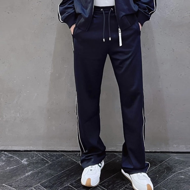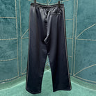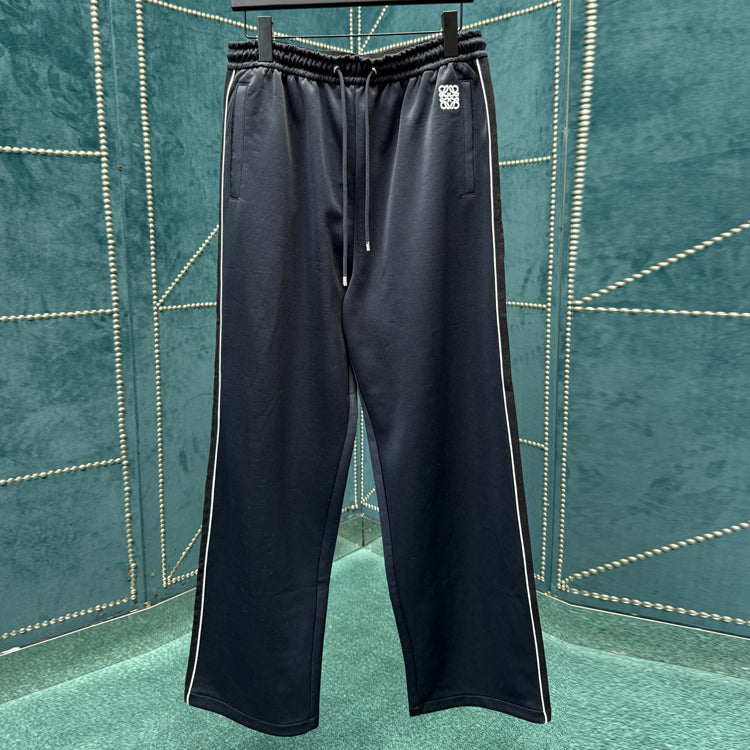 Lightweight technology plain knitted pants. Loose fit, standard length mid waist, straight elastic waistband, drawstring zipper pocket, zipper back pocket, herringbone pattern side trim, front Anagram embroidery