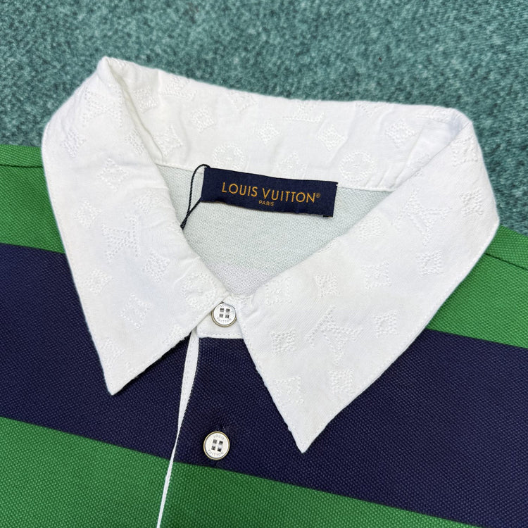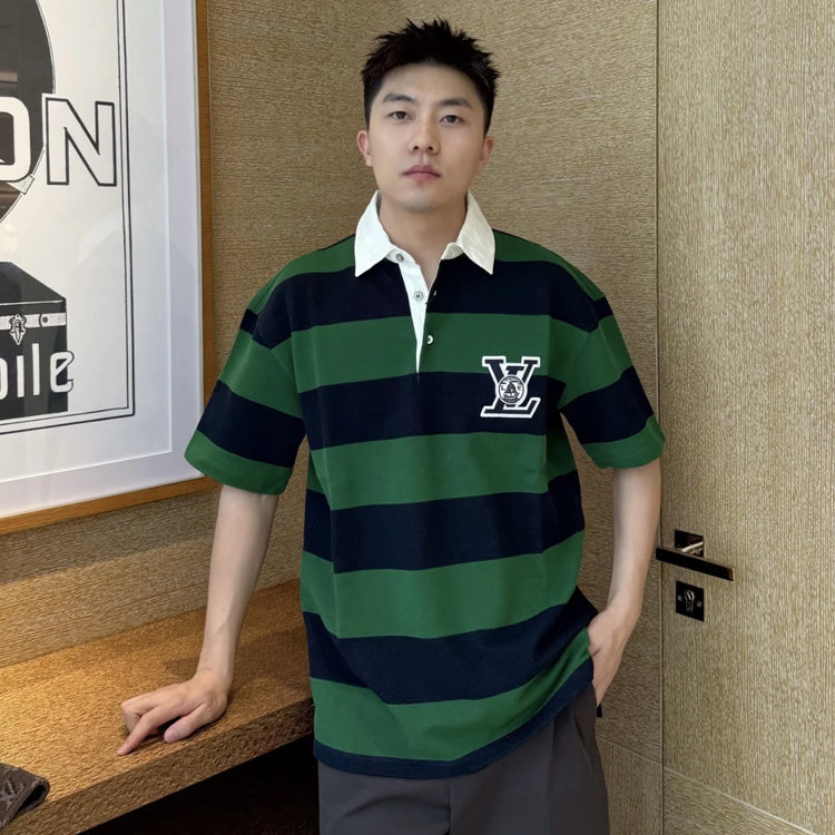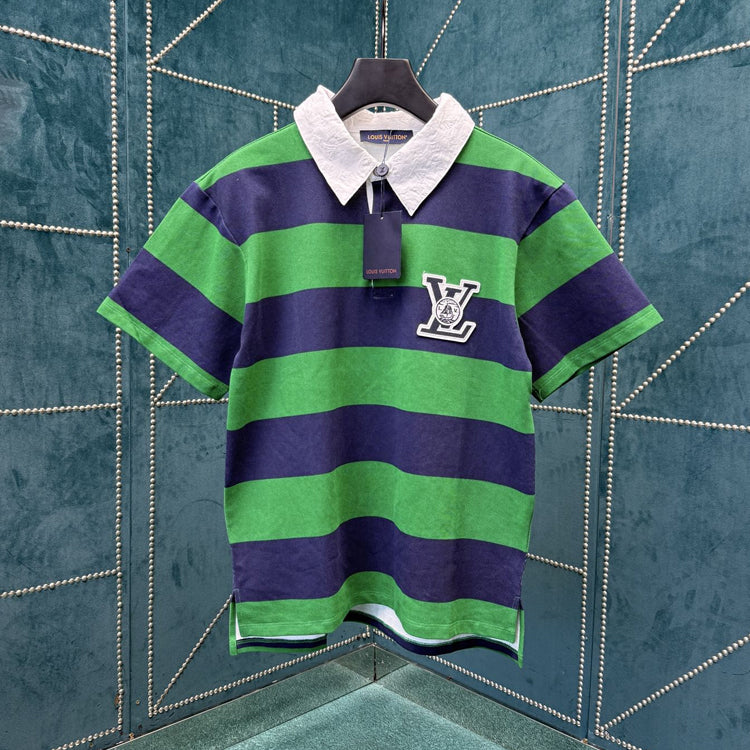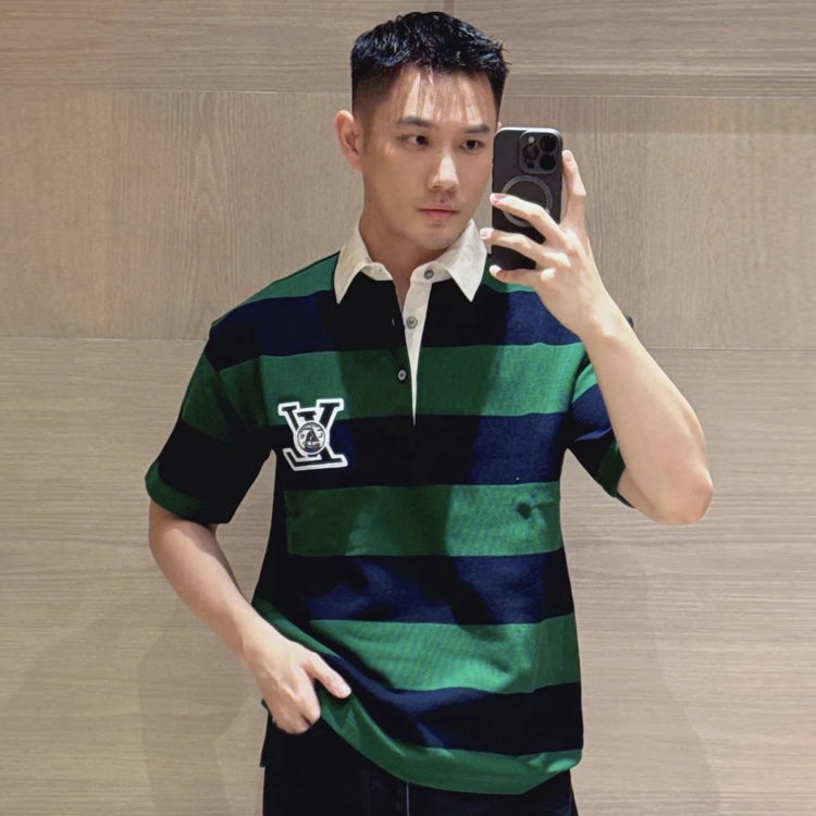 LV 25ss new striped short sleeved polo shirt This striped polo shirt