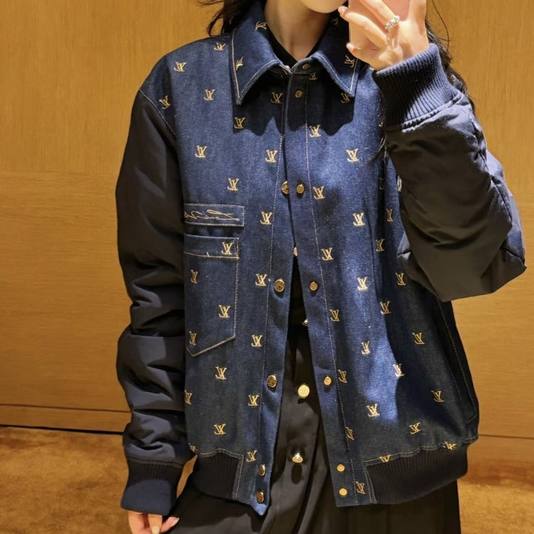 LV 25SS New Upgraded and Remastered Denim Baseball Jacket