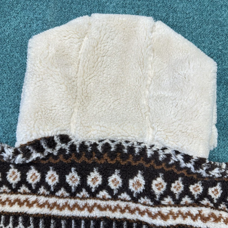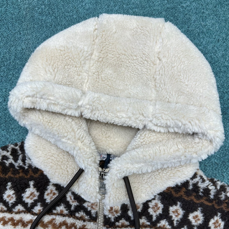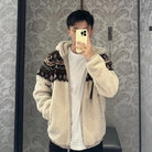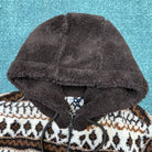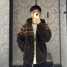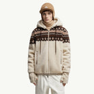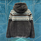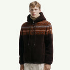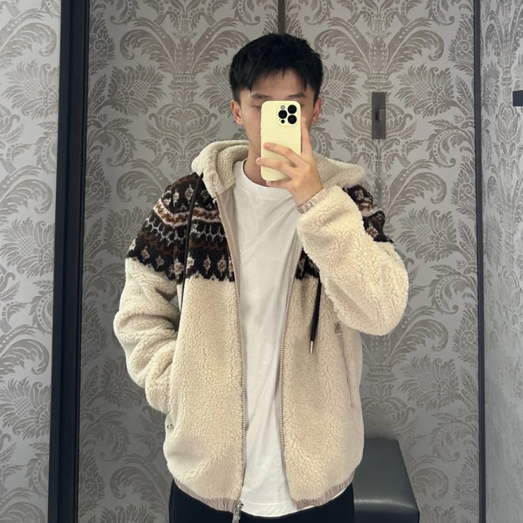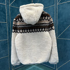 The hooded sweatshirt is inspired by traditional knitwear, cleverly combining comfortable texture and geometric patterns