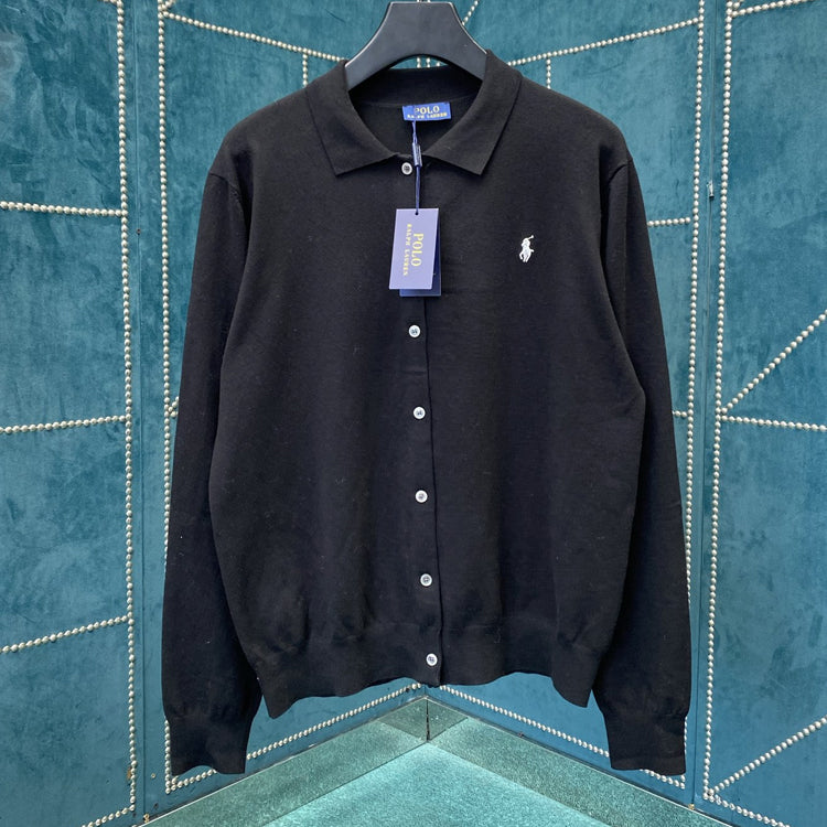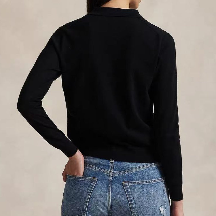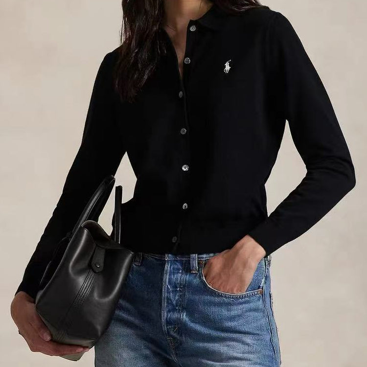Polo 25ss new slim fit polo collar knit cardigan with classic embroidery on the chest