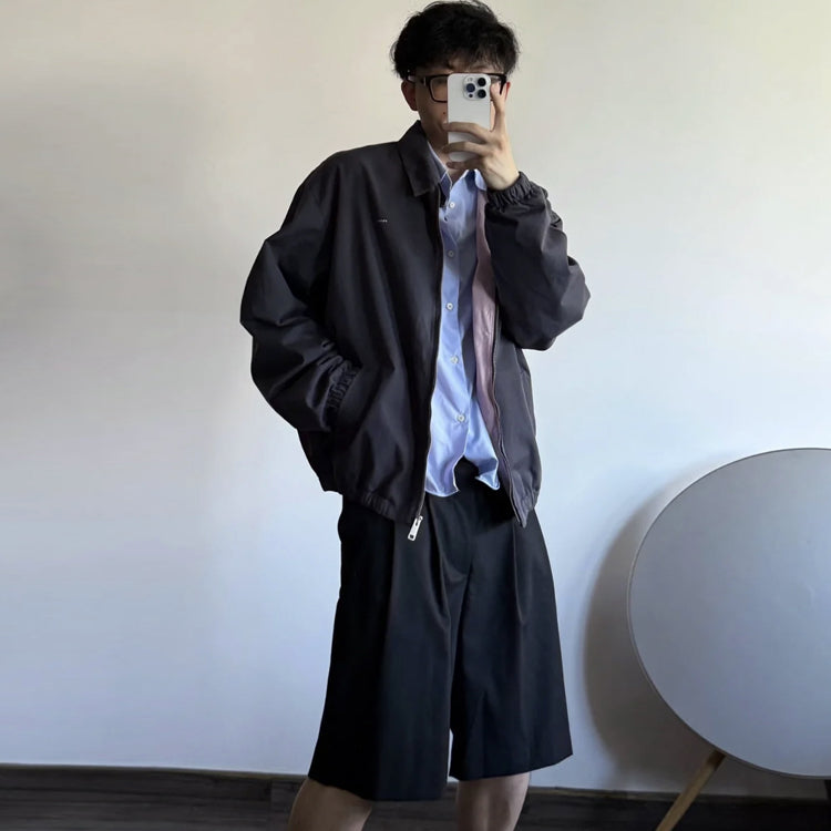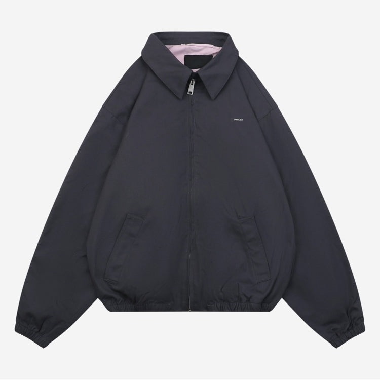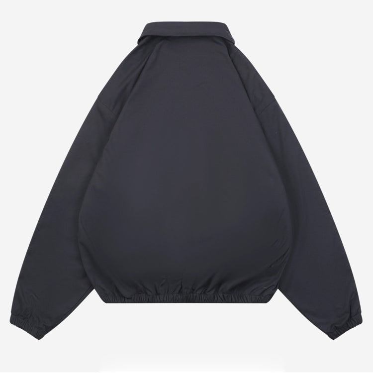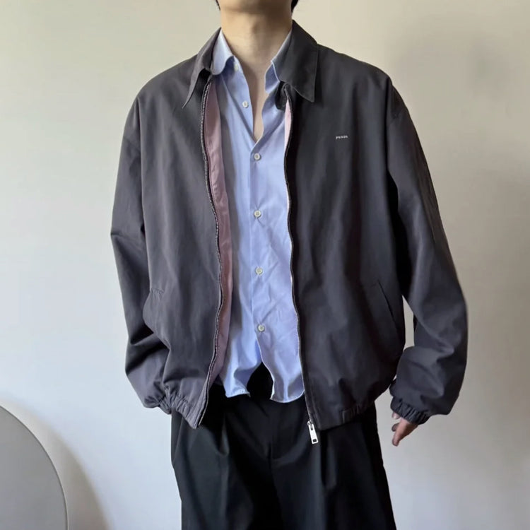 Full process woven fabric with high count and high density, using a blend of combed long staple cotton and trace high-tech polyester fibers for both warp and weft yarns. By adjusting loom parameters and yarn tension, the fabric presents a delicate, dense, and stiff texture. Its surface has an extremely subtle texture, rather than the plain luster of ordinary fabrics. This density ensures the verticality and durability of the jacket's silhouette, making it less likely to deform over time. Fixed dyeing fabric, "Harrington Grey Powder" is not an ordinary powder gray, but a composite color tone that has undergone multiple color calibration experiments.