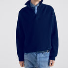This cashmere ribbed knitted polo shirt collar sweater features soft lines and a soft texture.