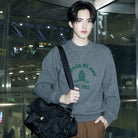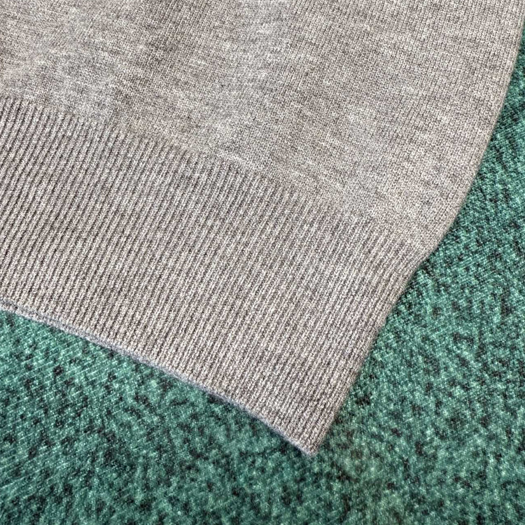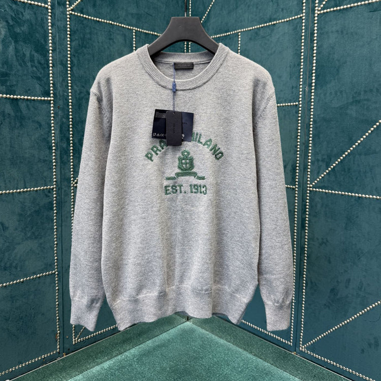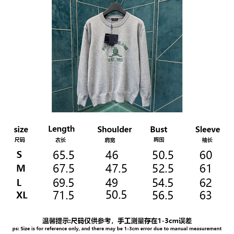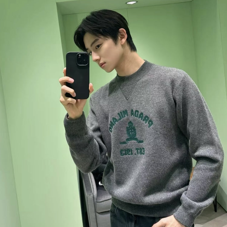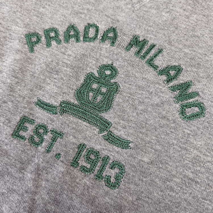 Embroidered green letters on the chest, ribbed cuffs and hem